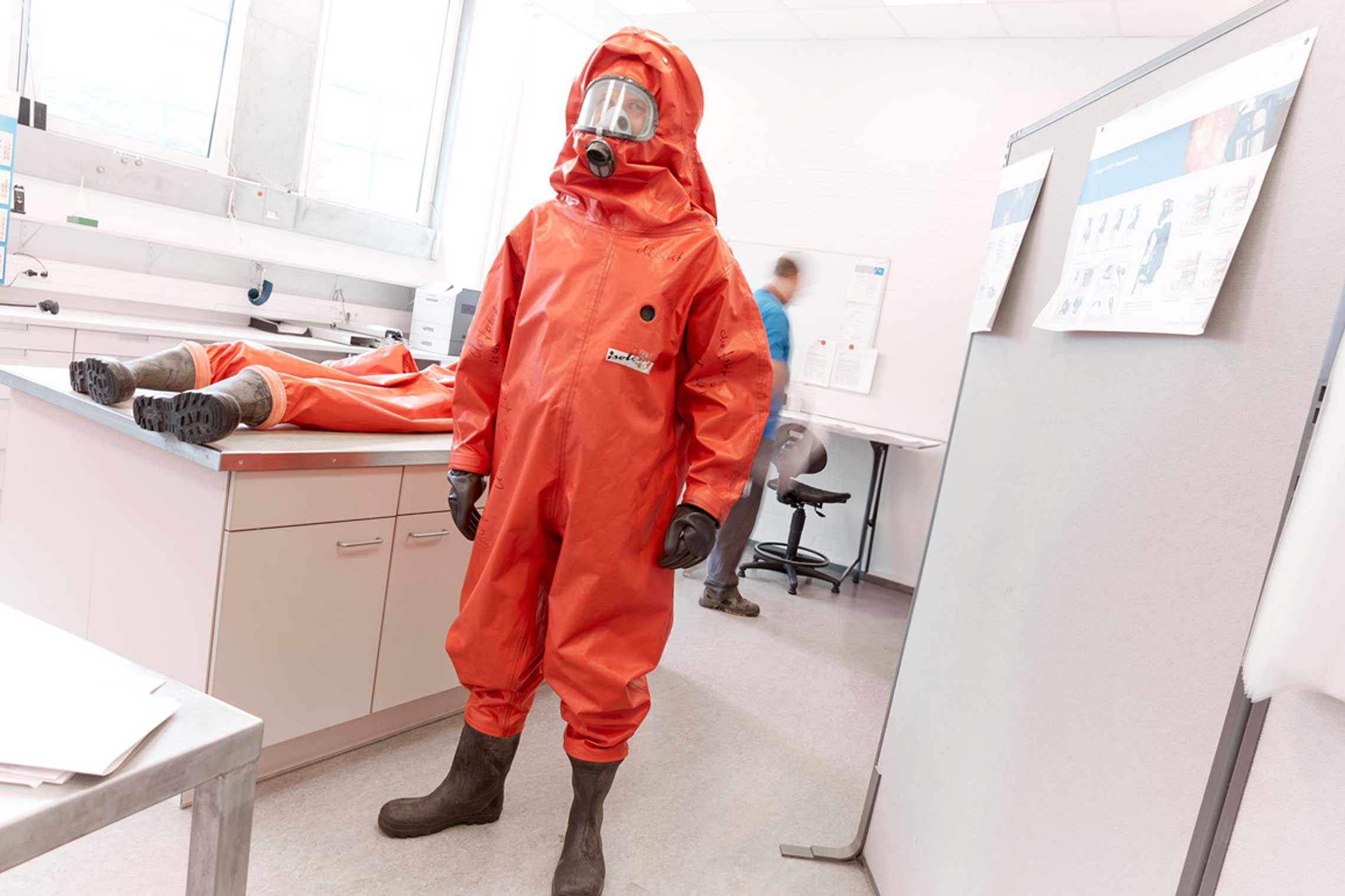 Inspektion und Dichtsitzprüfung von Chemikalienschutzanzügen (CSA)